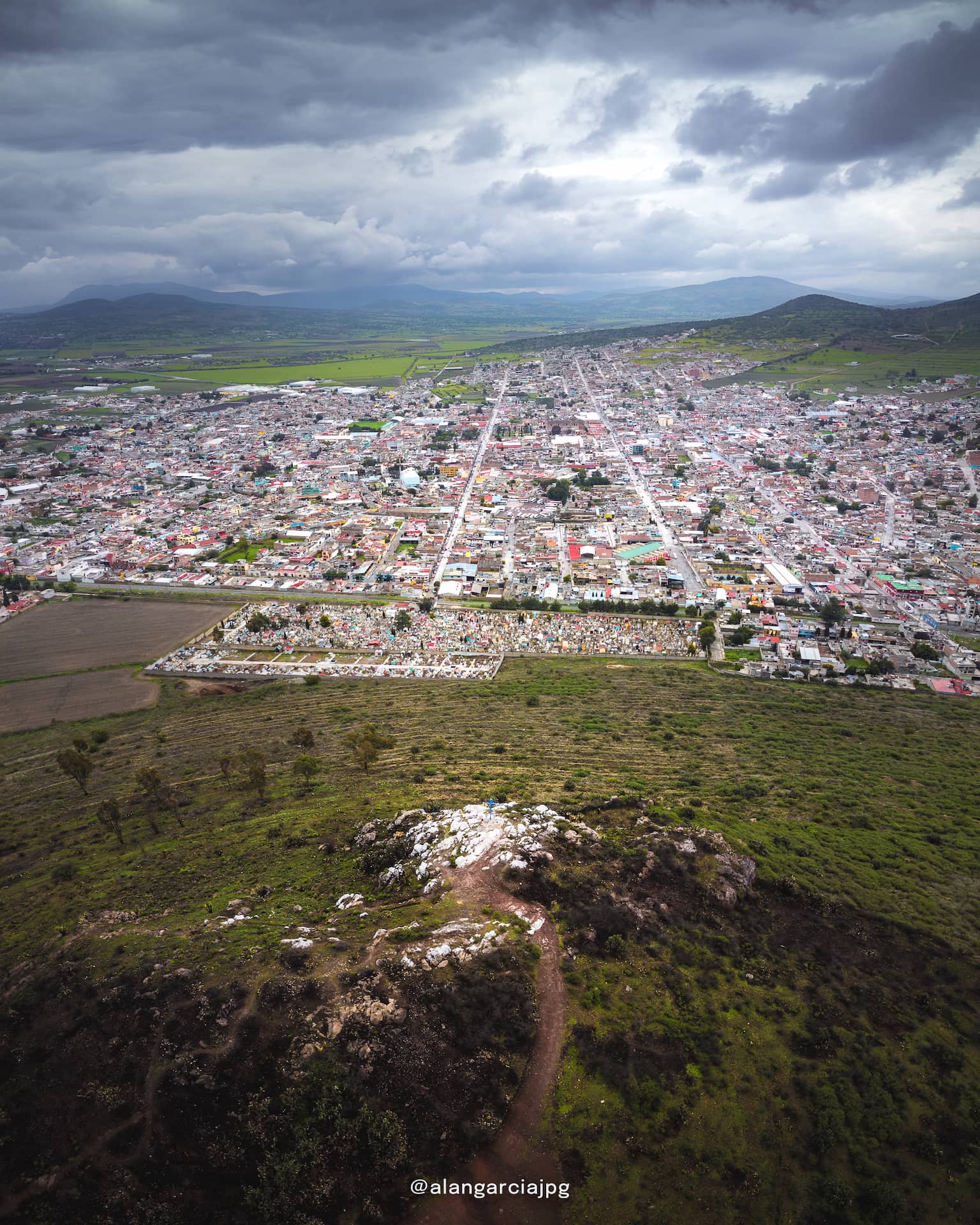 Apan, Hidalgo con vista desde lo alto. Abajo, yace la punta del Cerro de San Pedro con su cruz.